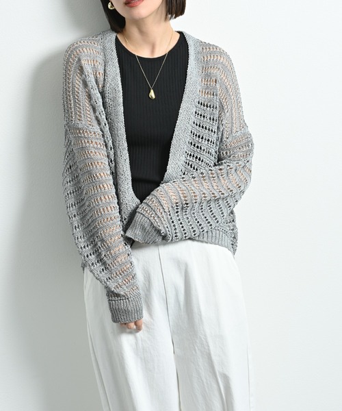 肌触りの良さが魅力 ナチュラル感あるニット羽織 ポリエステルを撚糸して、軽さとボリューム感が魅力のペーパーヤーンで、ナチュラルなニット羽織に仕上げました。また麻に似た清涼感があり、上品な光沢と美しい編地が特徴で汗をかいてもべたつかず、ドライなタッチもポイントです。 優しいシルエットが女性らしさを演出してくれ、深めのVネック開きでこなれ感をプラスしました。着やすい着丈でスタイルを選ばず活躍してくれます。カットソーやTシャツでデイリーカジュアルに、ブラウスやニットできれいめにと幅広いコーディネイトでお楽しみいただけます。 ■取り扱い ご自宅でイージーケア(手洗い)ができます。 INTERPLANET/actuel(インタープラネット/アクチュエル) ・concept いつだって私らしく、私自身のスタイルが決まる。。。時代や年齢に媚びない『らしさ』を纏って生きる女性へ。旬なベーシックと抜け感のあるカジュアルをMIX。そんな大人カジュアルコーデを提案します。 ・お気に入りの登録について ショップ、ブランドのお気に入り登録でクーポンやタイムセールの通知などお得な情報を受け取ることができます♪また、気になるアイテムのお気に入り登録でセールや再入荷の通知など受け取ることができます