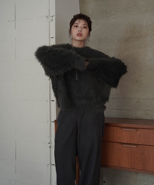 【商品紹介】 ふわふわの表面感が可愛いニットプルオーバーです。 ラフなサイズ感が女性らしい着こなしにぴったり。 シンプルなボトムに合わせるだけで、洗練された雰囲気を演出してくれるアイテムです◎ <ディテール> ・オーバーサイズ ・襟、袖口、裾リブ仕様 ・ドロップショルダー 【マテリアル】 ナイロンとアクリルを使用した毛足の長いフェザーヤーンを使用しています。 ふんわり軽くてあたたかい、ずっと触っていたいほどなめらかな肌触りが魅力です。 手洗いでのお手入れが可能です。 ・厚み/厚手 ・透け感/なし ・裏地/なし ・伸縮性/あり 【お取り扱い上の御注意】 <お届け時のシワにつきまして> ページで着用している商品は撮影前に全てプレスをかけております。 その為お送りする商品は畳みジワや細かいシワがついている場合がございます。 ご了承下さいませ。 <色移り・色落ちについてのご注意点> この商品は摩擦(特に湿った状態での摩擦)や汗や雨などでぬれた時は他の衣料や下着に色が移る事がありますので、十分ご注意ください。 この製品は編地の性質上ちょっとした不注意から引っ掛けてしまいがちです。取り扱いの際には、十分注意して下さい。 着用時にベルト、バッグなどの表面の粗い物との摩擦や引っかかりに注意して下さい又、染料の性質上、汗や摩擦により色落ち・色移りすることがあります。 濡れた状態で放置されますと多少汚染することがありますのでご注意下さい。 又、つけ置き洗いはお避け下さい。 出来るだけ単独の洗濯をお勧めします。 洗濯時に多少縮むことがありますので形を整えてから干して下さい。 漂白剤の使用はお避け下さい。 素材の性質上、着用中や洗濯時の摩擦により毛玉が出来ることがあります。 その際にはお早めに毛玉取り機等でのお手入れをお勧めします。 ●染料や加工を加えた際の臭いが製品に付着している場合がございます。 臭いが気になる場合には、風通しの良い日陰の場所に干して頂けましたら幸いです。