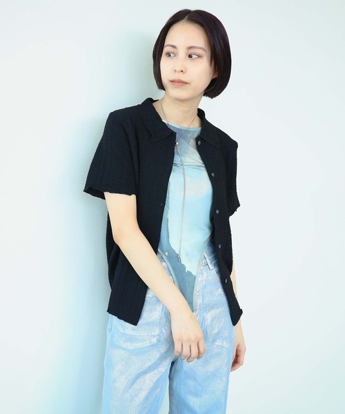 人気のシリーズがリニューアル! ■デザイン 毎シーズン人気のシャーリングシリーズが登場!オープンカラーにリニューアルし、生地にやや厚みを付けて本体を小さくし、全体的にコンパクトなサイズ感に仕上げています。コントラストを付けた配色ボタンもポイントに◎。立体感のある表面で1枚で可愛く決まります。 ■コーディネート ワイドシルエットのボトムスとの相性がよく、メリハリのある着こなしがおすすめ。 ■サイズ 体にフィットするサイズ感です。 ■素材 生地に肉感があり、透け感が少ないです。 ■ケア方法 手洗い可 (詳細は商品についている品質表示ラベルをご覧ください) Model:H170 B79 W59 H86 Size:ONE SIZE 生地の厚さ:普通 透け感:なし 伸縮性:なし 光沢感:なし 裏地:なし 【スタッフレビュー】 スタッフ:シミズ ネネ 身長:160cm / 普段サイズ:S / 着用サイズ:ONE SIZE サイズ感: インナー使いがしやすいコンパクトなサイズ感。 素材感: 柔らかく、肌触りも良いです。素肌に直接触れても快適。 ポイント: カジュアルながらもフェミニンな雰囲気を纏える優秀アイテム! スタッフ:おミツ 身長:164cm / 普段サイズ:S / 着用サイズ:ONE SIZE サイズ感: 着丈、袖丈ともにやや短め。 素材感: 軽い素材感でストレッチが効いています。 ポイント: キャミワンピのインナーとして、室内外の温度調節用の軽い羽織りとしても活躍する一枚。 ※光の当たり具合やパソコンなどの閲覧環境によって、実際の色味と異なって見える場合がございます。予めご了承ください。 ※商品の色味は商品単体で撮影した画像をご参照ください。