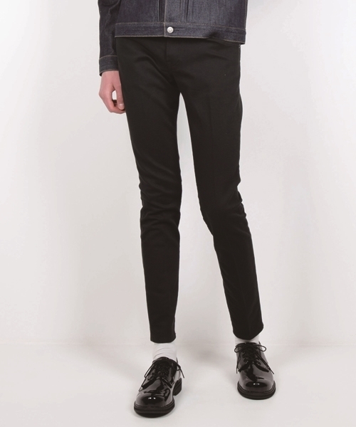 『特徴的なカーブの腰ポケットを配し、流れるようなラインが美しいスリムパンツ』 センタープリーツで仕上げた、特徴的なカーブの腰ポケットを配した5ポケットスリムパンツ。 シルエットは脚のラインを綺麗に見せてくれるタイトなシルエットを採用。 トップスを選ばないスリムタイプなので、コーディネートの幅が広がります。 また、ストレッチ素材を使用しているので、ストレスフリーで履き心地も抜群です。 アイビーやミリタリーの要素を加味し、バックスタイル、ポケットの配置、オリジナルボタン、ミリタリー仕様の補強など、パンツに纏わるすべての事を真摯に追及しこだわり抜いた一本です。 ■ベッドフォードコードストレッチ 軍のジャケットなどに採用されるベッドフォードコードのストレッチ生地です。