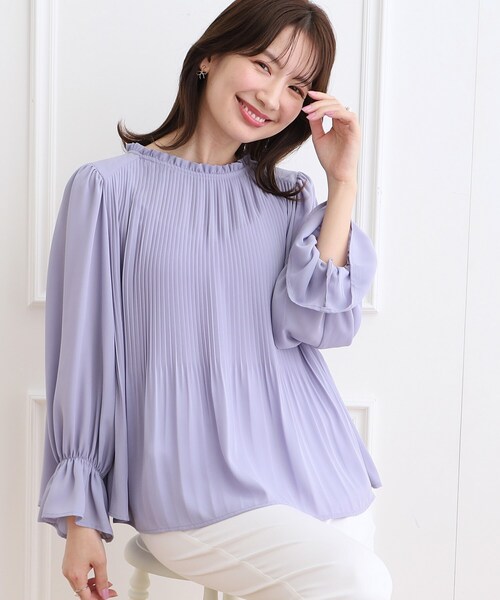 ほんのりフレアシルエットの揺れるプリーツデザインが上品なオフィスにもセレモニーシーンにも活用できるブラウス ~POINT~ 身頃部分にはプリーツ加工を施し、動きのあるデザインに仕上げました。 衿部分はフリルデザイン、袖はキャンディスリーブデザインで華やかに。 ジャケットイン・ジャンスカの中に着たり、インナー使いがしやすいのも◎ 腰まで隠れる丈感は、パンツスタイルにも相性◎ 【ディティール・機能】 軽やかで落ち感のあるジョーゼット素材を使用。 ハンドウォッシャブル機能付き。 【スタッフコメント】 ・maki(163 ) シンプルなデザインながらも、上品な華やかさのあるプリーツデザインブラウス。 セレモニーシーンのジャケットインにもおすすめです。お仕事にも使い易いので兼用出来ます。 【24SS NEW ARRIVAL】 【24SS NEW COLLECTION】 モデル情報:身長162cm B80 W59 H85 着用サイズ:38(M) 店舗へのお問い合わせ商品番号:508-88016 ●製品寸法: 36(S):着丈56cm B183cm 袖丈54cm 肩幅37cm 38(M):着丈57cm B186cm 袖丈55cm 肩幅38cm 40(L):着丈58cm B189cm 袖丈56cm 肩幅39cm 42(LL):着丈59cm B192cm 袖丈57cm 肩幅40cm 備考: