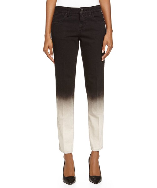 Stella McCartney degrade denim jeans. Moderate rise sits at hips. Five-pocket style. Formfitting legs. Cropped at ankle. Button/zip fly; belt loops. Cotton/spandex. Made in Italy.