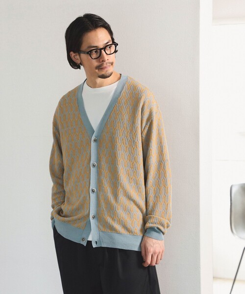 ケアがしやすい洗えるニット■デザインスタイリングのポイントになる柄が魅力のカーデ。程よいバランスのVネック開きの5ボタン仕様で、襟から裾・袖口のリブは柄が引き締まるバランスでデザイン。本体の軽い素材に合わせてボタンも薄く軽量なものをチョイスしています。■コーディネートデニムやチノパンツなどシンプルな王道アイテムとのスタイリングがおすすめ。■サイズゆったりとしたドロップショルダーに、バストやアームに程よいゆとりをもたせたリラックスフィットです。さまざまなシーンで手軽に羽織れる汎用性の高いアイテムです。■素材涼しげなシャリ感と軽さを兼ね備えたリネン混の糸をセレクト。こだわりのある奇抜になりすぎない幾何学柄のジャカードがアクセントに。■ケア方法水洗い・ドライクリーニング両方可※(詳細は商品についている品質表示ラベルをご覧ください。)■アテンション「引っ掛け」この製品は素材の特性上、他の物に引っかかりやすい性質のため糸が引き出されることがあります。 着用時にベルト・バッグ・アクセサリーなどにご注意ください。クリーニングや洗濯の際にも他の物との引っかかりに注意し、ネットを使用し取り扱い絵表示に従ってください。また、肌のデリケートな方は刺激を感じる場合があるためご注意ください。Model:H178 B90 W77 H91 62kg Size:L(GREEN)Model:H176 66kg Size:L(SAX)※光の当たり具合やパソコンなどの閲覧環境によって、実際の色味と異なって見える場合がございます。予めご了承ください。※商品の色味は商品単体で撮影した画像をご参照ください。