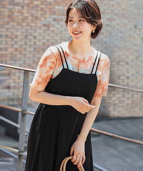 モードにもカジュアルにも■デザイン落ち着いた配色が魅力的なニュアンス柄をプリントしたチュールTシャツ。袖口、アームホール、裾にメローがかかっており可愛いアクセントになっています。袖丈は5分袖なので初秋まで、長いシーズン着用可能◎。■コーディネートシンプルに1枚はもちろん、キャミワンピースやビスチェのインナーを上から合わせたレイヤードスタイルもおすすめ。コーデの幅を広げてくれるアイテムです。■サイズコンパクトなサイズ感。■素材チュール素材で伸縮性があり着脱しやすいのもポイントです。■ケア方法手洗い可(詳細は商品についている品質表示ラベルをご覧ください)【GREY】Model:H166 B83 W63 H85 Size:ONE SIZE【BROWN】BEAMS STAFF:H161 Size:ONE SIZE※光の当たり具合やパソコンなどの閲覧環境によって実際の色味と異なって見える場合がございます。予めご了承ください。※商品の色味は商品単体で撮影した画像をご参照ください。※アイテムサイズは商品サンプルを採寸しているため、実際の商品と多少の誤差が生じる場合がございます。※画像の商品はサンプルのため、実際の商品と「仕様」「色味」が異なる場合がございます。