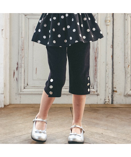 伸縮があり柔らかな履き心地のミラノリブ素材を使用した6分丈パンツ。 裾にはメタルボタンを並べて目を引くポイントに。 ぴたっとした細身のシルエットでボリュームあるトップスと合わせてもバランスよく着こなせます。 おしりのポケットには光沢感のある糸で刺しゅうを施しました。 ストレッチの効いたボトムはデイリー使いにも便利な1枚。 シンプルなブラックカラーで幅広いコーデに着回しできます