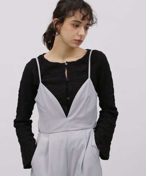 コンパクトシルエットのカーディガン。表面感のある素材が特徴的な1枚です。スッキリとしたシルエットに短めの丈感なのでプルオーバー風の着こなしも〇ワンピースやノースリーブアイテムなどの羽織としても活躍するアイテムです。