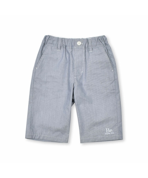 さらっとして清涼感のあるコードレーンの生地を使用したひざ下丈ハーフパンツ。 爽やかな着心地で春夏コーデにぴったりの1着です。 Tシャツを合わせてカジュアルにも、ポロシャツを合わせて少し改まった場面にも。 幅広いシーンで着回しできる点もおすすめのポイントです。 ウエストにはベルトループや飾りボタンも配置して総ゴムなのにおしゃれ見えします。 裾にはワンポイントでロゴ刺しゅうを入れました。