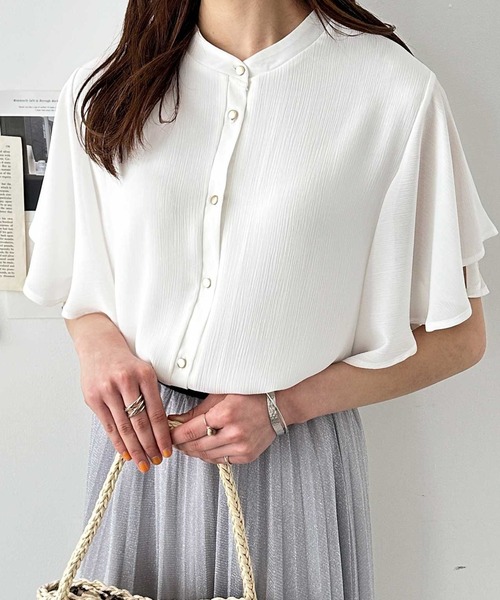 前後2WAYデザインで幅広い着こなしが楽しめる♪ ふんわりフレアー袖が大人フェミニンな上品ブラウス 〇通勤からデイリーまで幅広いシーンで活躍! 〇ドレープが綺麗なふんわりフレアー袖 〇上品で涼やかな表面感のある楊柳素材 ■デザイン ランダムなドレープのきいたフレアー袖が目を惹くデザインブラウス。 前後2WAYデザインなので色々なコーデが楽しめる優秀アイテムです! ボタンを後ろにしてハイネックブラウスとして着ても可愛い♪ 上品でマットなゴールドボタンもコーデのアクセントに。 ボリューム感のあるふんわり袖は気になる二の腕もカバー。 身頃は2枚重ね仕様でウエストアウトでも華やかな印象に♪ きちんと感のあるデザインなので、お出かけや通勤にもおススメです! ■素材 表面感のある楊柳素材 程よい透け感のある上品な素材感が◎ ※やや透け感のある素材なのでインナーの着用をおススメします。 …………………… 透け感:あり 厚さ:薄め 伸縮性:なし 裏地:なし(身頃のみ2枚重ね仕様) 洗濯方法:手洗い …………………… ■コーディネート 通勤時はシンプルなきれいめボトムに合わせて大人っぽく着こなすのがおススメ! オフの日にはデニムやベイカーパンツと合わせてカジュアルダウンしても◎。 サロペットやジャンパースカートに合わせたトレンド感たっぷりのスタイリングも可愛い。 普段使いからオフィスシーンまで幅広く活躍してくれる1枚です! ●前後2WAY ※生地の特性上透けますので、インナーの着用をおススメします。 --------------------------------------------------------------------- ※サイズ寸法は実際の寸法と多少の誤差がある場合が ございます。 ※ご覧いただいているPC/WEB環境や撮影環境により、 多少色味が異なって見える場合がございます。 【お買い物をよりお楽しみいただく為に】 ▼商品のお気に入り登録をおすすめします♪ 『♡をクリック!』 完売カラーの再入荷やラスト1点の追加、 セールの際の通知を受ける事ができます。 ブランドのお気に入り登録もご一緒にお願い致します。 ---------------------------------------------------------------------