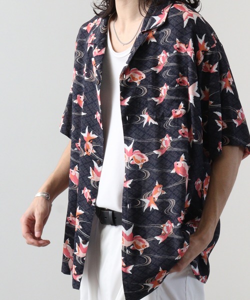 JUNGLE STORM / ジャングル・ストーム ■point レーヨン生地を使用した、サラっとした肌触りで光沢と風合いのある生地感で和柄プリントが目をひく人気のアロハシャツ。シンプルなインナーの上にさらりと羽織るだけで、着こなしを華やかに彩ってくれる1枚です。 ユニセックスでも着用可能なので、ペアルックやリンクコーデにもオススメです。 ■silhouette 滑らかに肩を落としたドロップショルダーでゆるめのビッグシルエットなのでルーズに着こなせます。 ■coordinate デニムパンツ(ジーンズ)やワイドパンツ、バルーンパンツやテーパードパンツなど様々なボトムスと相性抜群◎ 一枚での着用はもちろん、前ボタンを開けてTシャツやタンクトップの羽織としてシャツジャケットのような着こなしもおすすめ。 足元は、厚底スニーカー合わせでカジュアルスタイル、ローファーなどの革靴やグルカサンダルと合わせてきれいめスタイルなどコーデの幅も広がります♪ メッシュキャップやバケットハット、ニット帽を合わせても◎ ■color 全6色総柄展開 ・生地の厚さ:厚い〇〇〇●〇薄い ・伸縮性:縦なし・横なし ・透け感:ややあり ・裏地:なし ・光沢:なし 【お買いものをお楽しみいただく為の方法】 ★商品のお気に入り登録★ ・完売カラーの再入荷通知や、ラスト1点の通知、セールの通知も受け取ることができます。 ★ブランドのお気に入り登録★ ・新商品や再入荷など、いち早くブランドのお得な情報を受け取ることができます!