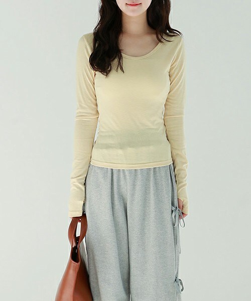 モダンな手先のデザインでこなれ感あるTシャツ✨ すっきり広く開いた首元で顔周りも明るく見せ、キャミワンピのインナーとしてもオススメです◎