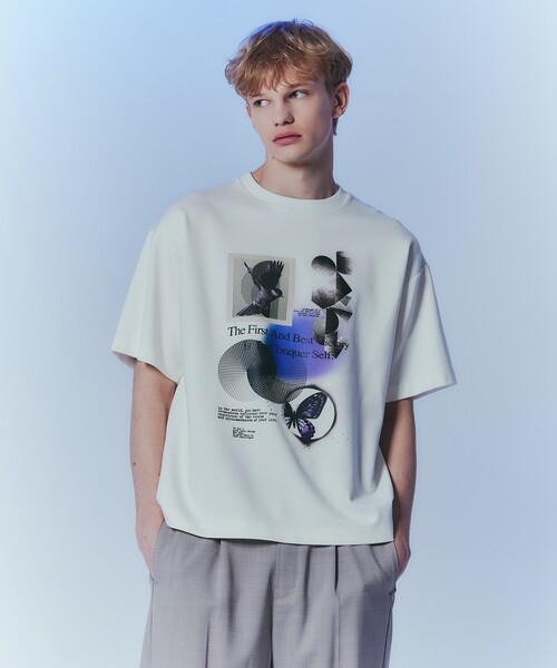 上品なデザインカラーが夏スタイルの主役に 【素材】 程よい肉感とさらりとしたタッチが特徴的な素材を使用。 ポリエステルをベースに使用しているため、シワにもなりにくく取り扱いしやすいのもポイント。 【デザイン】 フロントのデザインプリントがインパクトと遊び心ある半袖カットソー。 プリント部分は様々なグラフィックをバランス良く配し、一つのモチーフになるようにデザインしており、一枚着でも凝った印象のスタイリングに仕上がります。 程よくゆとりのあるリラックスシルエットのため、こなれたプリントTバランスで夏スタイルをお楽しみいただけます。 【スタイリング】 デニムからスラックスまで幅広いアイテムと相性が◎ 今季はカジュアルストリートトレンドが強いため、デニムやカーゴパンツとの合わせがオススメです。 一枚着はもちろん、インナー使いとしても優秀です。 【推奨サイズ】 02サイズ(M):165~175cm 03サイズ(L):170~180cm ※標準体型を基にした目安になります。 - BRAND CONCEPT - 時代を超えて支持されるトラディショナルなアイテムをベースに、アソビ心とストリートの自由な発想を取り入れ、日本独自のミックススタイルを提案します。 【気になる商品はお気に入り登録をおススメ】 ▼商品のお気に入り登録 完売しているカラーの再入荷通知や、ラスト1点、セールの通知をお知らせいたします。 ▼ブランドのお気に入り登録 新商品や再入荷など、いち早くブランドの情報を受け取ることができます。 ※照明の関係により、実際よりも色味が違って見える場合があります。また、パソコン・スマートフォンなどの環境により、若干製品と画像のカラーが異なる場合もございます。 モデル情報:身長175cm B83 W66 H87 着用サイズ:03(L) 店舗へのお問い合わせ商品番号:170-28302 ●製品寸法: 01(S):着丈67cm B110cm 袖丈21cm 肩幅52cm 02(M):着丈69cm B114cm 袖丈22cm 肩幅54cm 03(L):着丈71cm B118cm 袖丈23cm 肩幅56cm 備考: