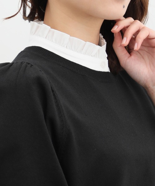 フリルで可愛さアップ♪ 【デザイン】 フェミニンなフリルのスタンドカラーデザイン。 フロントのボタン使いがアクセント。 【素材・機能】 アジャスター付きの脇ひもで、ずれにくく調節もラクラク。 【スタイル】 シンプルなニットやスウェット、Tシャツなどに合わせるだけで、普段のコーデを格上げ◎ 着ぶくれせず、手軽にレイヤードスタイルが完成♪ ※湿度・摩擦により多少色落ちする可能性があります。 品番:585-117-8378