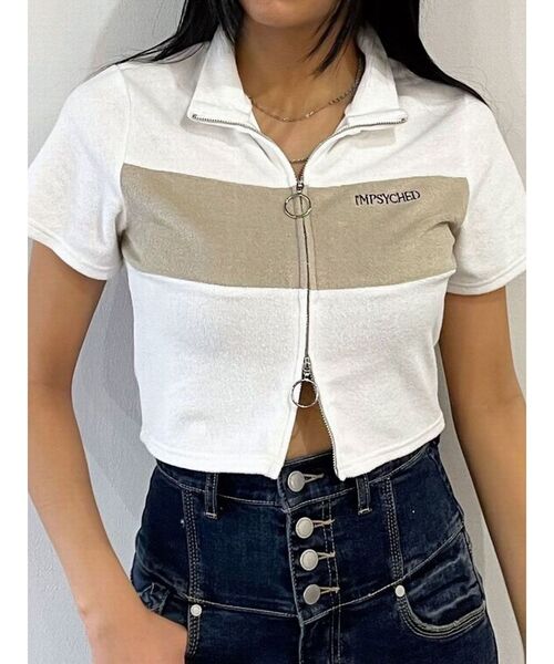 パイル生地で着心地◎コンパクトトップス ■デザイン スポーティーな雰囲気を感じる配色デザインや、ロゴ刺繍のポイントが目をひくアイテム。 逆開ファスナーデザインで、合わせるボトムで首元や裾の開きのバランスを変えて トレンド感のある着こなしが楽しめます。 程よい伸縮性のパイル生地は着心地も良く、 夏に向けて薄着のシンプルなスタイリングの際にもアクセントに。 ■スタイリング ボリューム感のあるボトムと合わせたゆるピタシルエットで着用するのが一押し。 逆開ファスナーなのでボトムのウエスト位置によって開きのバランスを変え 肌見せスタイルで着用するのがおすすめです。 ※着用画像はフラッシュの加減で実際の製品と色味等が異なる場合が ございますので、生地のズームアップ画像をご確認ください。 ※ご利用の端末画面の設定により実際の商品と色味が異なる場合がございます。 【商品特徴】 透け感:なし 伸縮性:あり 生地の厚さ:普通 サイズ感:普通 裏地:なし ポケット:なし 【トクする便利機能】 ♡商品のお気に入り登録 再入荷時、ラスト1点の時、セール開始時にお知らせします。 ♡ブランドのお気に入り登録 新商品や再入荷、セール情報など、ブランドのお得な情報を受け取ることができます。 是非ご活用ください!