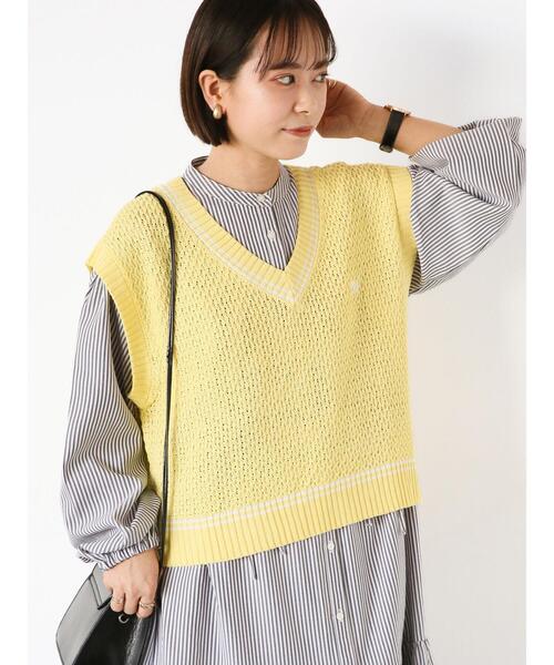 胸に刺しゅうのワンポイントをあしらったチルデンニットベスト。Vネックと裾のダブルラインも爽やかなアクセントをプラスします。ややゆったりめのシルエットで、華奢な印象にみせてくれるのも嬉しいポイント。レイヤードコーデもこなれ感のある着こなしに決まるアイテムです。※商品画像は、撮影環境やお客様のご利用のPC・スマートフォンのモニター環境などにより実物と色味に差異がある場合がございます。