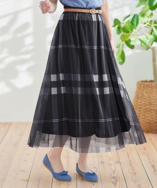 ボリュームたっぷりでふんわり広がるシルエットがとても可愛いチェック柄チュールスカートです。 ウエストゴム仕様でフィット感とリラックス感のあるはき心地です。 大きめのチェック柄で様々なアイテムに合わせやすいモノトーンの色で作られてるので、スタイリングも楽々♪ 春から秋まで活躍するおすすめのスカートです。 ■DESIGN ・ウエストゴム:あり ・ファスナー:なし ・ポケット:なし ■MATERIAL ・透け感:薄い色に多少あり ・伸縮性:なし ・裏地:あり ■LAUNDERING 洗濯機洗い 洗濯表示 30℃まで非常に弱い洗濯可 漂白不可 タンブル乾燥不可 日陰つり干し乾燥 アイロン不可 弱いドライクリーニング(石油系)可 非常に弱いウェットクリーニング可