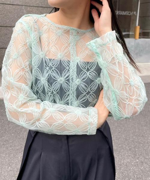 1枚で華やかな印象に◎春らしいシアーブラウスが登場!商品コメント・シアー感が春らしいブラウスが4色展開で登場しました!・花柄をモチーフがシーズンライクなデザインです◎・コーディネートの主役にもなってくれます。スタイリングポイント・短丈トップスなのでハイウエストボトムとも相性良く決まります◎・シアー感あるので、インナー選びも楽しんでいただけます!-----------------------------------------------------裏地:なし伸縮性:なし光沢感:なし生地の厚さ:うすめ------------------------------------------------------ 商品のお気に入り登録➡ お気に入りアイテムの値下げ・再入荷・在庫1点などの通知を受け取ることができます。 ブランドのお気に入り登録➡ 新商品や再入荷、セール、クーポン配布などお得な情報を受け取ることができます。 ※サイト上のカラー名と、お届け商品に記載されているカラー名が異なる場合がございます。 ※商品の色味は、撮影場所や光のあたり具合などにより色味が違って見える場合が御座います 。 また、お客様のお使いのPCのモニター環境などにより色味が違って見える場合が御座います。予めご了承の上ご注文下さい。 ※ご注文いただいた予約商品のお届け時期の確認は、注文履歴ページより行えます。------------------------------------------------------