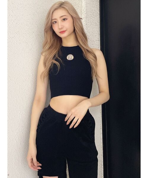 商品コメント:大人気のモールドデザインが、新しくSQUAREgydaロゴで新登場しました! トレンドのアメスリニットトップスに施され、ロゴの内側からチラッと見える肌見せが、ヘルシーです。 シャリ味のある爽快感抜群の糸を使用しているので、長い期間お楽しみいただけるのもうれしいポイントです。 コーデ:ショート丈なので、どんなボトムスにも合わせやすいです。 ワイドデニムと合わせていただくと今っぽいおしゃれな印象に仕上がります。 あえてレディーライクな綺麗目ボトムと合わせていただきMIXコーデにしていただくとワンランク上のおしゃれコーデになります。 ノースリジャケットとショートパンツのセットアップのインナーに合わせていただいても可愛いです。