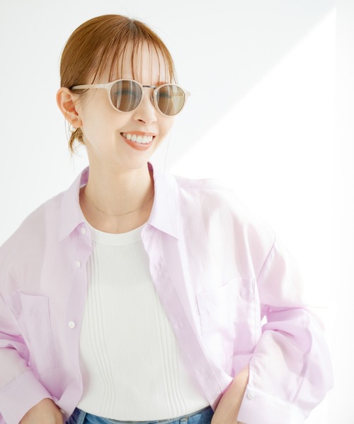 軽いつけ心地と見え感で、これからのシーズンに大活躍。【デザイン・シルエット】 ・春夏らしいクリアフレームのアイウェア。 ・薄く色づくレンズは、フレームのカラーごとに異なるのがポイント。 ・左右のフレームを繋ぐメタルブリッジがリッチなアクセント。 【カラー】 ・ライトグレー(08):ライトグレー(フレーム)×ブルーグレー(レンズ) ・キナリ系(17):ピンクホワイト(フレーム)×ブラウン(レンズ) ・ピンク(65):クリアピーチ 【スタイリングポイント】 ・ベーシックでどんなスタイルにも合わせやすいのがグレー。 ・肌に馴染むナチュラルさで自然とつけこなせるのはクリアピンク。 ・アイボリーはレンズが濃色のため、日差しが強い日に最適。 ----------------------------- 可視光線透過率:ライトグレー(08) 56% / キナリ系(17) 20% / ピンク系(65) 70% 紫外線透過率:1% 紫外線カット率:99%以上 ケース付き ----------------------------- ※撮影時の光、お使いのモニター環境によって色の見え方が違う場合がございます。
