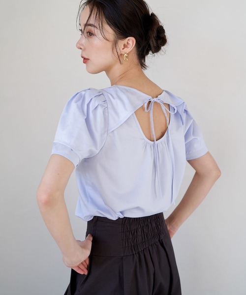 2層になったパフスリーブがデザインポイントのブラウス。 バックスタイルにもリボンデザインや背中あきのデザインを取り入れて、さりげなく華やかさをプラスしたアイテムです。ハリのあるブロード素材を使用しており、上品な着こなしが叶います。シンプルなシルエットなので、どんなボトムにも相性抜群。インでもアウトでも着やすい丈感なので、コーディネートの幅が広がる1枚です。 《素材の特徴》 -ハリ感のあるブロードを使用 -きれいな表面感のコットン混素材 -ご自宅で手洗い、もしくはネットで手洗いコースOK 透け感:若干あり 裏地:なし 伸縮性:なし 光沢感:なし 生地の厚さ:うすめ モデル身長 OWHT:model 165cm LBLU:model 163cm 【スタッフ着用コメント】 《スタッフ名:hono》 身長:156cm/体型:ウェーブ/普段サイズ:S/着用サイズ:F ヒップが少し隠れる着丈です。シンプルなシルエットですが、袖部分やバック部分にデザインポイントがあるので、華やかな印象をプラスします。綺麗見えするシャツ素材なのでオフィスでも活躍する1枚です。 yuka:身長:162cm/体型:ウェーブ/普段サイズ:S/着用サイズ:F おなかがしっかり隠れる長さなのでインスタイルがおすすめです。程よい長さの袖丈で二の腕をスッキリと見せてくれます。シンプルなデザインなので、Tシャツ感覚で着ていただけるデイリーアイテムです。 ※インナーは付属しておりません。 ※画像の商品はサンプルです。お届けする商品に仕様サイズ等の変更が生じる場合がございます。予めご了承ください。 ※照明の関係により、実際よりも色味が違って見える場合があります。 またパソコンスマートフォンなどの環境により、若干製品と画像のカラーが異なる場合もございます。予めご了承ください。 商品の色味は、商品単品画像をご参照下さい。 Stylevoice for xxx(スタイルヴォイスフォー)は株式会社ウサギオンライン: Usagi Online Co.,Ltd.が企画・運営するブランドです。