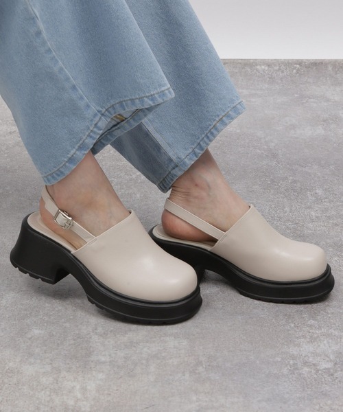 ボリュームのあるデザインが可愛らしいサボサンダル。高低差の少ない厚底ソールとストラップ付きで、安定感もあり履きやすいのも嬉しいポイント。カジュアルにもフェミニンにも合わせやすいアイテムです。ソックス合わせもおすすめ。
