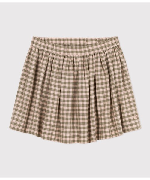 淡い色合いのギンガムチェックをあしらったスカートです。オーガニックコットンを使用し、さらりとした肌触りがこれからのシーズンにぴったりなシアサッカー素材を使用。ウエストはゴム使用となっているのでお着替えも簡単。さまざまなアイテム相性がよく、春先から夏にかけて存在感を発揮する注目アイテムです。