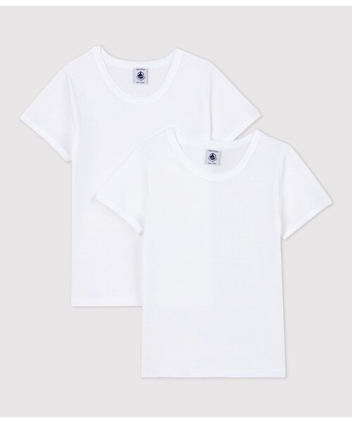 清潔感のあるホワイトの半袖Tシャツ2枚セットです。環境にやさしい、第二の肌と呼ばれるやわらかな手触りの1×1リブ編み素材を使用した快適な着心地が人気。首元にあしらわれたピコレースが、シンプルなデザインのアクセントに。肌着としてはもちろん、これ一枚でも活躍するアイテムはギフトにも喜ばれます。