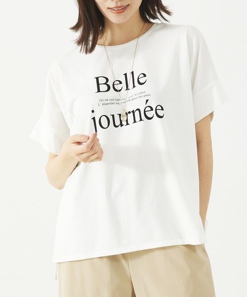 新色と新しいロゴで今年も登場!定番Tシャツ 【Design】 mavie定番のロゴTが今年も登場です。ノーマルプリントと箔プリントで2種類のロゴをご用意。カジュアルになりすぎない様に計算された襟の作りや袖の切替などこだわりの詰まったTシャツです。ゆったりとした着心地ですが、ダボっと見える事はなく、重ね着やジャケットのインなども◎ <ロゴの意味> ホワイト・サックス・チャコール→”いい日” ホワイト_1・ホワイト_2・グレー_1→”こんにちは” <ロゴのカラー> ホワイト・ホワイト系その他→ロゴカラー:ノーマルブラック サックスブルー・チャコールグレー・グレー系その他2→ロゴカラー:ノーマルホワイト ホワイト系その他2・グレー系その他→ロゴカラー:シルバー箔プリント 【Fabric】 コットンポリで大人見えする素材。ゴワゴワせずとても柔らかい着心地です。厚手過ぎないので淡い色はインナーの色によって響く場合があります。 【Styling】 コーデ次第でメンズライクもレディーな着こなしも◎フロントインしてタイトスカート合わせは特におすすめです。 ********************** 透け感:なし(淡い色は若干あり) 裏地:なし 伸縮性:あり 光沢感:なし 生地の厚さ:普通 **********************