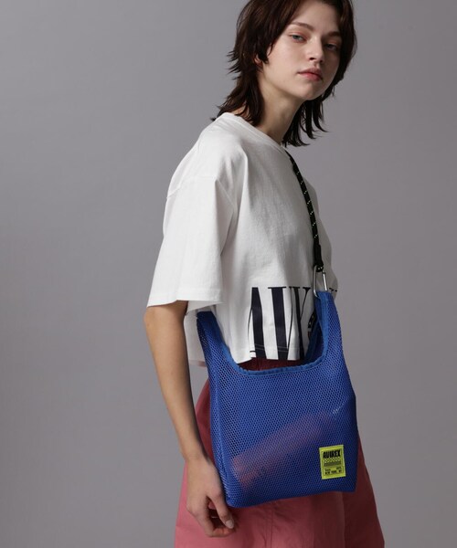 2024 SPRING&SUMMER ITEMメッシュショルダーバッグ・軽くて涼しげな、季節感のある素材・長さ調節可能なショルダー紐・ショルダー紐は取り外し可能なので、シーンによって使い分け頂けます。【AVIREX Belle/アヴィレックス ベル】本格的なミリタリーウェアが持つ機能性とデザインをレディースカジュアルに投影したライン。個性的かつ時代性のあるレディースブランドとして聡明、自由、好奇心、凛として快活な働く大人の女性へ向けたレディスカジュアルを提案しています。