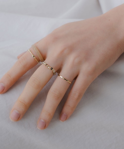 4つのデザインを両指に装着しても、お手持ちのリングと組み合わせても◎アクリルとビーズのリングは可愛らしいデザインで、ゴールドは上品な印象を与える派手すぎないデザインに仕上げられています。細リング:9号その他:14号ビーズ:FREE