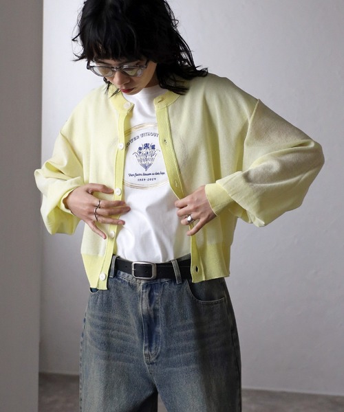 ♦リバーシブルで使えるサマーシアーカーディガン♦夏の羽織に最適なドライタッチのシアーカーディガンです。麻混ならではの節がより味があり、表情感のある一枚にしてくれています。表側と裏側でブルーは配色に、イエローとパープルは微配色になっており、全色リバーシブル着用が可能です!裏側はアウトリンキング仕様でよりカジュアルな見え方で着用頂けます。形はシンプルながらも、袖口はリブ仕様で袖にボリュームを出すことでメリハリのあるシルエットに仕上げました。■MATERIAL清涼感のあるレーヨンに麻が入っており、ドライタッチな素材です。■手洗い可----------------------透け感:あり伸縮性:あり光沢感:なし----------------------【注意事項】※サンプルで撮影しているため、実際の商品と仕様が異なる場合がございます。※商品画像は、撮影時の光の当たり具合やパソコンなどの閲覧環境により、実際の色味と異なって見える場合がございます。予めご了承ください。