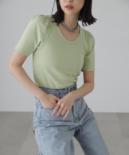 (fabric&design)細めのリブピッチですっきりとした印象のテレコです。すっきり開けたフロントネックに、後ろは深めのUラインにし、ヘルシーな抜け感を作っています。ネックサイドから細めのリボンをプラスし今期のトレンドデティールをプラスしました。(styling)一枚着から、ビスチェやキャミワンピースのインナー使いなど着回しの効くアイテムです。■透け感:なし■生地の厚さ:普通■裏地:なし■伸縮性:あり■光沢:なし■シルエット:スタンダードmodel:骨格ウェーブ---------------------------------------------------◆商品のお気に入り登録◆お気に入りアイテムの値下げ・再入荷・在庫1点などの通知を受け取ることができます。◆ブランドのお気に入り登録◆新商品や再入荷、セール、クーポン配布などお得な情報を受け取ることができます。---------------------------------------------------※ご注文いただいた予約商品のお届け時期の確認は、注文履歴ページより行えます。