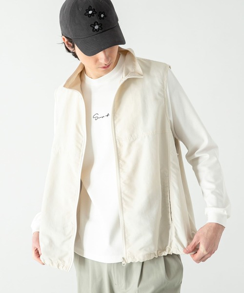 羽織るだけでトレンド感を演出できるナイロンベスト 〇ゆったりしたシルエットと大きめのアームホールのためオーバーサイズのアイテムとも相性◎ 〇裾のドロストでお好みのシルエットに変更可能 〇ユニセックスで着用可能 styling シンプルながらもゆったりとしたシルエットに仕上げているため、様々なアイテムとのレイヤードにお使いいただけます。インナーにスウェットやロンTを合わせるとカジュアルなスタイルに、シャツを合わせるとテイストミックスながらもクリーンな印象に仕上がります。 material しわにになりづらく柔らかなナイロン素材を使用しています 【2024 Spring/Summer】【24SS】 総重量 : 約235g ※商品画像は、光の当たり具合やパソコンなどの閲覧環境により、実際の色味と異なって見える場合がございます。予めご了承ください。 ※商品の色味の目安は、商品単体の画像をご参照ください。 ▼お気に入り登録のおすすめ▼ お気に入り登録商品は、マイページにて現在の価格情報や在庫状況の確認が可能です。 お買い物リストの管理に是非ご利用下さい。 素材感 透け感 : なし 伸縮性 : なし 裏地 : あり 光沢 : なし ポケット : あり