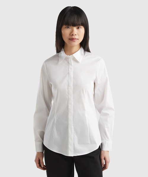 ストレッチコットン混紡の長袖スリムフィットシャツ。クラシックな襟と隠しフロントボタン。毎日の装いに最適なエッセンシャルな一着です。 まずは【お気に入り登録】を。商品の情報がお届けしやすくなりました♪ ご購入後はぜひWEARへのコーディネート投稿♪ お待ちしております。