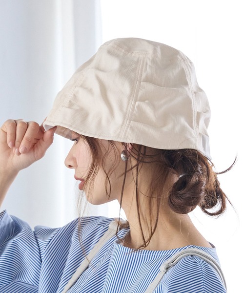 いつものスタイリングにプラスワンするだけでお洒落見え■デザイン・シルエットクシュクシュとしたタックデザインが可愛いバケットハット。シンプルなデザインにさりげなくタックをあしらい、こなれ感をプラス。コンパクトなサイズ感で小顔効果を狙えます。■生地・薄手のポリエステル生地を使用しているので軽くてノンストレス■コーディネートTシャツにデニムパンツなどのラフなコーディネートでもカジュアルさを強調しつつ、トレンド感のあるおしゃれを演出できます。ベーシックカラーなので普段使いしやすいアイテム。アウトドアやスポーツをするときの日除けとしても活躍します。伸縮性:なし透け感:なし裏地:あり生地感:薄手のポリエステル生地注意点:ブラックは素材の特性上、色落ちしやすいのでご注意下さい。お洗濯方法によっては縮みや色あせの可能性あり。乾燥機等のご使用はお控え下さい。▼生地や素材の性質により2cm前後サイズ誤差が出る場合がございます。▼モデル着用写真は撮影環境により、多少実際のカラーと異なる場合がございます。▼色落ちの恐れがありますので、他のものと分けて洗って下さい。▼当商品は機械による生産の過程上、『生地を織る際の糸の継ぎ目』や多少の『ほつれ』、繊維の『混紡 』、形やサイズに多少の『誤差』が生じる場合がございます。
