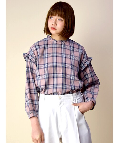 春らしい淡いカラーのチェック柄プルオーバー。6分袖のふんわりした袖が◎。ワイドパンツにINコーデですっきりと着るのもオススメです。後身頃にコンシールファスナーがつくので着脱もラクにできます。綿100%の素材なので通気性も良いです。