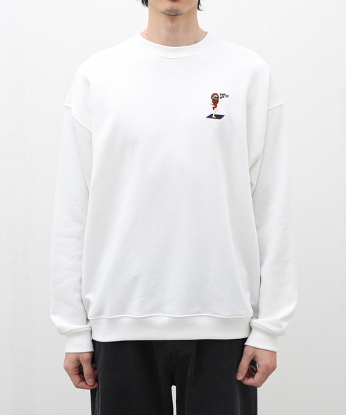 トレーニングモジャの新作スウェット。 コミカルなキャラは健在で今年も体重をひたすら絞る。 モデルサイズ:身長:178cm 着用サイズ:L 本体:洗濯機洗い(弱)