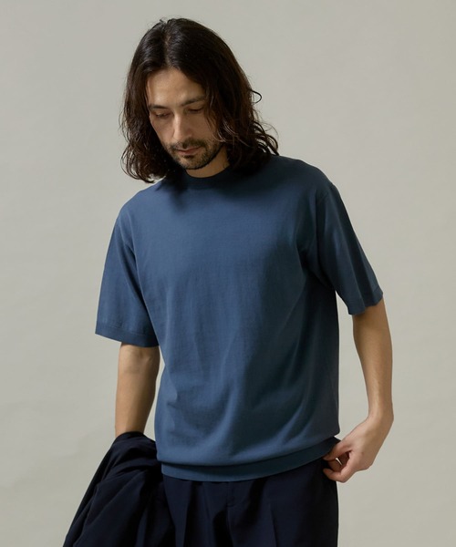 LIFE STYLE TAILORオリジナルのコットン100%のハイゲージニットです。 衿幅を後ろにいくにつれて太い幅にしており、ジャケットを着た際に素肌が触れにくいようになっています。 ジャストサイズなシルエットでジャケットのインナーはもちろん、Tシャツの代わりに羽織り物のインナーや一枚で着ても品のあるドレッシーな印象の一着に。 洗濯可能なので汗をかいても清潔に着ていただけます。 【LIFE STYLE TAILOR(ライフスタイルテーラー)】 DOORSのプライベートレーベル。「LIFE STYLE TAILOR」は私たちが提案する暮らしの新たなエッセンスとしてスタートしたドレスラインです。 日々の暮らしの一部であるビジネスライフにおいても、私たちURBAN RESEARCH DOORSが“仕立て役”を担いたいという想いから名付けました。 【2024 Spring/Summer】【24SS】 ※この商品は水分や汗、摩擦(特に湿った状態での)などにより、色落ちや色移りすることがあります。 ※直射日光や蛍光灯に長時間あたると変色したり、色あせすることがあります。 ※その他お取り扱いに関しましては、商品に付属のアテンションタグをご覧ください。 総重量 : 約180g ※商品画像は、光の当たり具合やパソコンなどの閲覧環境により、実際の色味と異なって見える場合がございます。予めご了承ください。 ※商品の色味の目安は、商品単体の画像をご参照ください。 ▼お気に入り登録のおすすめ▼ お気に入り登録商品は、マイページにて現在の価格情報や在庫状況の確認が可能です。 お買い物リストの管理に是非ご利用下さい。 素材感 透け感 :ややあり(IVORYのみ) 伸縮性 :あり 裏地 :なし 光沢 :なし ポケット :なし ML