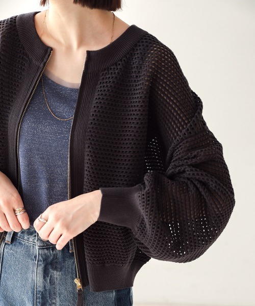 ■POINT スポーティーなメッシュ素材をブルゾン風に。ショート丈が今期のトレンド!! ■FABRIC メッシュ素材の透け感があることで、今の時期はレイヤードしたインナーの色見せ、暖かくなると肌見せと楽しんで頂けるアウターとなります。 ■COORDINATE ワンピース、Tシャツやブラウスとコーディネイトに取り入れやすいトレンドアイテムです。 ………………… 透け感:あり 裏地:なし ………………… ★商品のお気に入り登録 登録すると、完売しても再入荷時に通知を受け取ることができます。 ほかにもお得な特典があるかもしれません♪ ★ブランドのお気に入り登録 新商品や再入荷などの情報を受け取ることができますので、是非ご登録ください♪