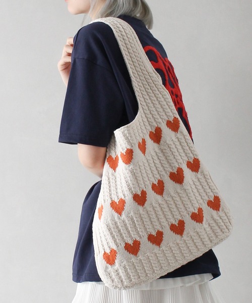 【SpRay ハートジャガードトート(IV.BG 3/7 GN 14入荷予定)】 配色のハート柄がかわいい クロシェ編みのトートバッグ◎ コーデを華やかにしてくれ、スタイリングの アクセントになってくれます。 軽くて持ち運びやすくA4サイズも入る 収納力抜群のサイズ感♪ たくさん入るので通勤通学などデイリー使いはもちろん、映えるデザインでテーマパークや 推し活などのイベントにも・ ガーリーからカジュアルまで様々なコーデで 使えオールシーズン活躍してくれるアイテム♪ #ニットバッグ #トートバッグ #ハート #ガーリーテイスト #カジュアルライク 【素材感】 柔らかく肌触りの良い生地。 ※詳しいお手入れ方法は商品タグをご参照ください。 ◆伸縮性 有り ◆透け感 無し ◆裏地 無し 【商品のお気に入り登録】 完売カラーの再入荷通知やラスト29点の通知 プライスダウンの通知も受け取ることができます。 ぜひご登録ください◎ 【ブランドのお気に入り登録】 新商品や再入荷など、 いち早く情報を受け取ることが出来ます。 ※輸送時による、多少の汚れ・シワがある場合がございます。 ※撮影時のライティング、ご覧になっているモニター・PC環境により実際の商品と色味が異なって見える場合がございます。ご了承の上お買い求め下さい。 ※着用、お取り扱いの際は、商品に付いている品質表示とアテンションタグを必ずご確認ください。