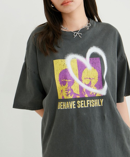 架空の90’sロックバンドのツアーTeeをイメージしたオリジナルTシャツです。【デザイン・シルエット】 古着屋で買ったメンズのロックTシャツを自分らしくハートの落書きをして世界に一つだけのオリジナルTeeを作ったというストーリーを背景にデザインしています。 かっこいい印象のフォトプリントなので、紫の強いピンクや黄色を使うことでイメージをPOPでコーディネートのアクセスになるように仕上げています。 <POINT> ・かっこいいフォトプリントにトレンドの落書きデザインの掛け合わせがかわいいポイント ・メンズライクなオーバーサイズで着回しの効くサイズ感 ・古着っぽさを出す為に洗いをしっかりかけ、クラック加工を施し経年劣化した雰囲気にこだわりました。 【素材】 毛羽たちの少ない肌ざわりの良いコットン100%バイオウォッシュ素材です。 気軽に洗濯機洗いができるのも嬉しいポイント。 【カラー】 ホワイト・チャコールグレーの2色展開 ※チャコールグレーは通常の染めの手法ではなく、古着の様な風合いを出す為に顔料染めという特殊技法で染めています。その為、摩擦による色落ちが通常の物より発生しやすくなります。お取り扱い時は淡色の物と避ける等の注意が必要になります。 【おすすめのスタイリング】 ビスチェやチュールアイテム、シアーグリッターアイテムなど、女性らしいアイテムと掛け合わせ今年らしいエッセンスをいれてスタイリングして頂くのがおすすめです。 ----------------------------- 透け感:ホワイトややあり 伸縮性:あり 生地の厚さ:普通 季節:春、夏 ----------------------------- 【モデル着用サイズ】 全色モデル身長:168cm、着用サイズ:F 詳細21~25枚目モデル身長:168cm、着用サイズ:F ※画像の商品はサンプルです。 実際の商品と仕様、加工、サイズが若干異なる場合がございます。 ※重量はサンプルMサイズの測量になります。サイズによって多少異なる場合があります。 ※画像によっては実際の色味と異なる場合があります。正しい色味は生地アップ画像をご確認ください。