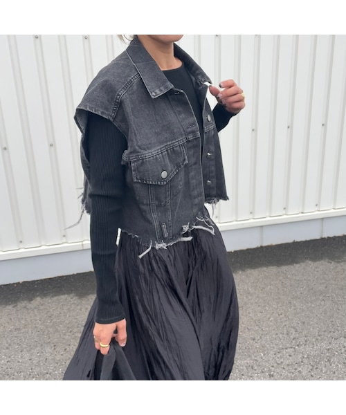トレンド感のあるショート丈が今季登場! オーバーサイズのショート丈デニムジャケットです。 ショート丈にダメージフリンジのデザインがアクセントになった古着のようなベストです。 バランスのとりやすい丈感なので、ボトムを選ばず着用出来、いつものコーディネートにプラスするだけで、シンプルながらもおしゃれ見えする今季おすすめのアイテムです。 ※モデル身長:161㎝ ◾️クリックポストにて代引きをお選び頂いた方は、400円プラスさせていただき、宅配便代引きにて発送させていただきますのでご了承下さい。 ◾️カラー ブラック ◾️サイズ F 身幅:60cm 着丈:48cm ※多少の誤差は予めご了承ください。 ◾️素材 綿100%