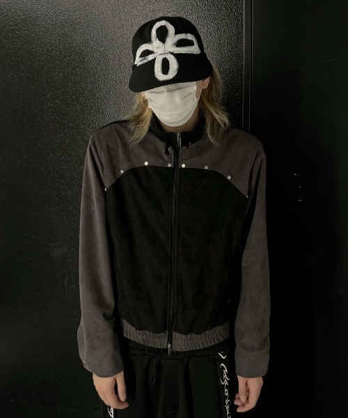 ストリートファッション XU エックスユー rivet suede biker jacket スタッズ 長袖ジャケット トラックジャケット オーバーサイズ ジップジャケット 羽織り 韓国ファッション 韓国ストリート