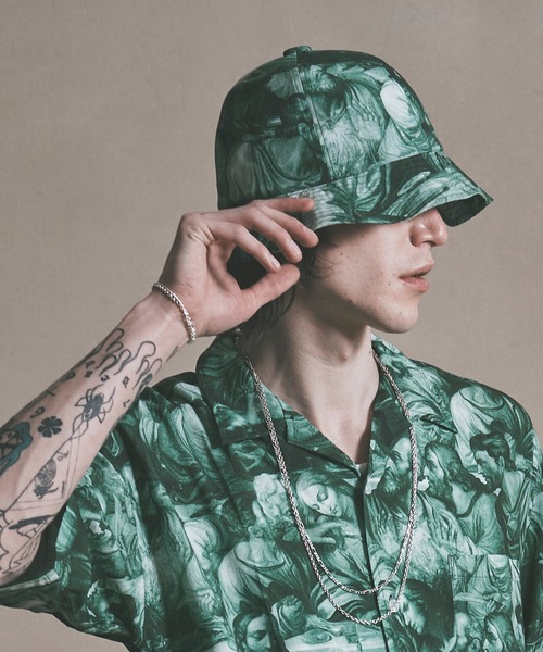 【洗練されたアートなグラフィックが快適に包み込む総柄メトロハット】 オリジナルアートグラフィックを総柄パターンに落とし込んだ存在感抜群の天ボタンの付いたメトロハット。 トーンを落ち着かせたオリジナルアートグラフィックはチープに見せず大人の雰囲気を醸し出し男女共に着用可能です。 滑らかで肌触りが良く、柔らかいレーヨン100%の生地を使用。 快適な涼感と生地の肌触りから上質な被り心地を楽しめます。 ■上質なレーヨンのメトロハット ■涼感のある快適な着用感。 ■オリジナルグラフィックの総柄パターン ■天ボタン付きのシックスパネルの仕様 ■半袖シャツ、ショーツがセットアップで展開 ■同シリーズ展開 ■ART GRAPHIC SHORT SLEEVE SHIRT/M1-02D1-SS01 ■ART GRAPHIC SHORT PANTS/M1-02D1-PS01 ■ART GRAPHIC HAT/M1-02D1-HW01
