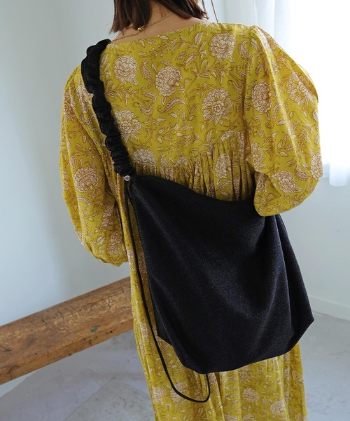 トレンドのキラキララメが目を惹くショルダーバッグ。軽く大容量なサイズ感で、デイリー使いにはもちろん、荷物の多い日や旅行にも活躍◎ショルダー部分はアジャスターで長さ調節ができるのも嬉しいポイント。きゅっと絞ればクシュっとした持ち手がかわいいハンドバッグとしてもお使いいただけます。マチがあるので、携帯、折り畳み傘、500mlのペットボトルなど普段持ち歩きたいものが入れやすいサイズ感。内ポケット付きで小物の収納にも◎いつものスタイリングにプラスするだけでこなれ感プラスする優秀アイテムです。※ 撮影時の照明などの環境と、モニターに表示される色味がメーカーにより変わってしまう等の理由により、実際にお届けする商品と、ご覧になられているアイテムの色が若干異なる場合がございます。ご了承下さいませ。