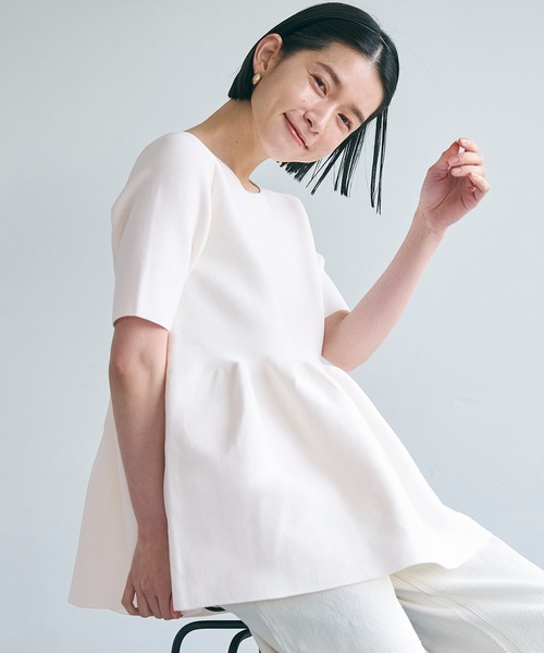 大人のフェミニンコーデに頼れるペプラムニット ■デザイン・シルエット 軽くて立体感のあるシルエットが魅力。 フレアシルエットがお腹周りを可愛くカバーしてくれます。 キレイめにも使えるのでオフィスコーデもおすすめの一枚です。 ■生地 ・さらりとしたニット生地 ・ストレッチ性があるのでストレスフリーな着心地 ■コーディネート すっきり見えするテーパードパンツやタイトスカート等と合わせると◎ ペプラムシルエットが腰の位置を高く見せてくれるので、 ハイウエストのボトムスとも好相性です。 トレンドのハンサムパンツと合わせた甘辛Mixコーデもおすすめ。 伸縮性:あり 透け感:ホワイトのみ光に透かすとあり 裏地:なし ポケット:なし 生地感:柔らかいニット生地 注意点:ひっかけにご注意ください。 お洗濯方法によっては縮みや色あせの可能性あり。乾燥機等のご使用はお控え下さい。 ※商品単体でのお写真が実物に最も近いお色味となっております。 ▼生地や素材の性質により2cm前後サイズ誤差が出る場合がございます。 ▼モデル着用写真は撮影環境により、多少実際のカラーと異なる場合がございます。 ▼色落ちの恐れがありますので、他のものと分けて洗って下さい。 ▼当商品は機械による生産の過程上、『生地を織る際の糸の継ぎ目』や多少の『ほつれ』、繊維の『混紡 』、形やサイズに多少の『誤差』が生じる場合がございます。 トップス 半袖ペプラムニット プルオーバー フレアニット Aライン ラウンドネック 上品 ストレッチ ミディアム丈 シンプル 25ss コカ COCA coca COCA coca