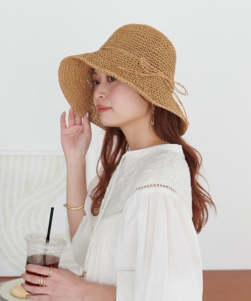 シーズンムード漂うハット。 ざっくりと編み上げた素材感が夏にぴったりなペーパーハット。ツバ広で深さがしっかりあるので紫外線対策に◎シンプルでコーディネートに合わせやすく、デイリーユースはもちろんアウトドアシーンでも活躍間違いなしです♪コンパクトに折りたたみできるので、持ち運びやすいハットです。 〇サイズ調節可能 〇あご紐ループ有
