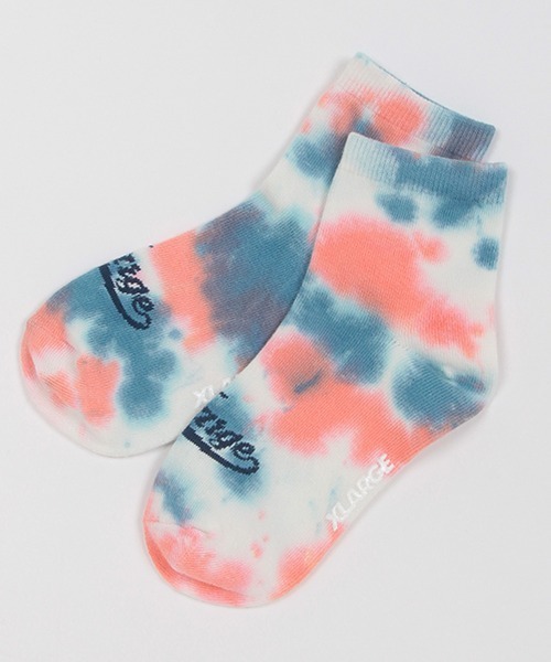 きれいなタイダイ染めが着こなしのアクセントに活躍するソックスです。アンクルにはロゴをのせて靴を脱いでもおしゃれなルックスに。 ハーフパンツなどとバランスが取りやすいミドル丈でご用意しました。 トップス(品番:9441211)、ショートパンツ(品番:9441108 )と同柄なので、リンクさせたコーディネートもおすすめです。