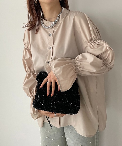 たっぷりとギャザーが施されたボリュームスリーブが上品なブラウス。身頃をシンプルに仕上げることで袖のデザインが引き立っています。 ジャストな丈感でアウトスタイルがおしゃれに決まり、ジレやジャンスカ、ロンパースのインナーとしても活躍します。 軽いストレッチが入っているのも嬉しいポイントです。 【インフォメーション】▼商品のお気に入り登録 完売カラーの再入荷通知を受け取ることができます。ぜひご登録ください★ ▼ブランドのお気に入り登録 新商品や再入荷などのお得情報を受け取ることができます。ぜひご登録ください♪