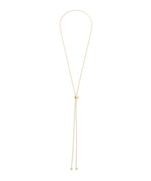 幅広いシーンで活躍■デザインシンプルなデザインながら、留め具のボールの高さによって変化を持たせられるネックレス。カジュアルにも綺麗めにも合わせやすく重宝するアイテムです。単品使いはもちろん長さ調節が出来るので、重ね付けにもおススメです。■サイズやや長めで、程よく存在感のある長さ。■素材【SILVER】真鍮パーツ, 真鍮チェーンにロジウムメッキ, シリコンパーツ【GOLD】真鍮パーツ, 真鍮チェーンにゴールドメッキ, シリコンパーツ【アクセサリー・小物雑貨の取り扱いについて】・貴金属は、体質により、かゆみやかぶれを生じる場合があります。・皮膚に異常を感じた場合は直ちにご使用を止め、専門医にご相談下さい。・家事やスポーツ、就寝時や乳幼児の世話をする時などは、身体に危害を及ぼす場合がありますので着用を避けて下さい。・熱伝導が高いので、高温の場所や寒冷地での着用は火傷や凍傷の原因となりますので着用を避けて下さい。・乳幼児が誤飲しないように、保管は十分にご注意下さい。