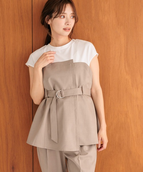 ーーートレンドのビスチェをカットの上からレイヤードしているように見えるプルオーバーーーー■pointウエストベルトで絞って着用できるのでスタイルアップも叶います。カットソー部分をフレンチスリーブにしてこなれ感と女性らしさを演出。バックスタイルにシャーリングを施しているのですっきりして見えます。■styling同素材のパンツ(品番:113883)とのセットアップスタイルがおすすめです。また、デニムやナロースカートとの合わせもカジュアルになり◎夏時期でも1枚でコーデが完成するアイテムなので涼しく着ていただけます!※屋外の光や照明の当たり具合で、実際の商品の色味とカラー別画像の色味に若干の違いが発生する場合がございます。 詳細画像と併せてご確認の上、ご注文いただきますようお願い致します。【INFORMATION】■商品のお気に入り登録完売していても再入荷時に再入荷通知を受け取ることができますので、是非ご登録ください!■ブランドのお気に入り登録新商品や再入荷などの情報を受け取ることができますので、是非ご登録ください!